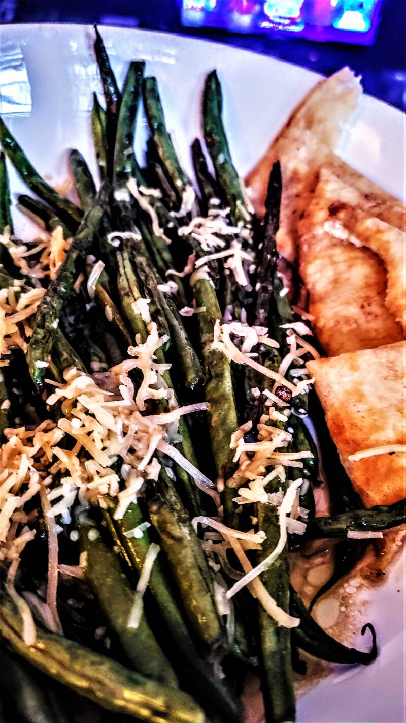 BRAISED GREEN BEANS POTATOES w/ TOMATOES & SALMON PATTIES